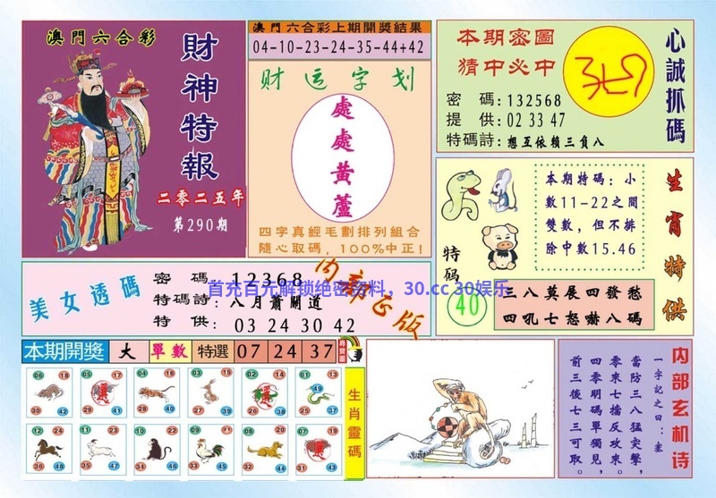 291期:【左右中特】【右肖】开:狗44准 |